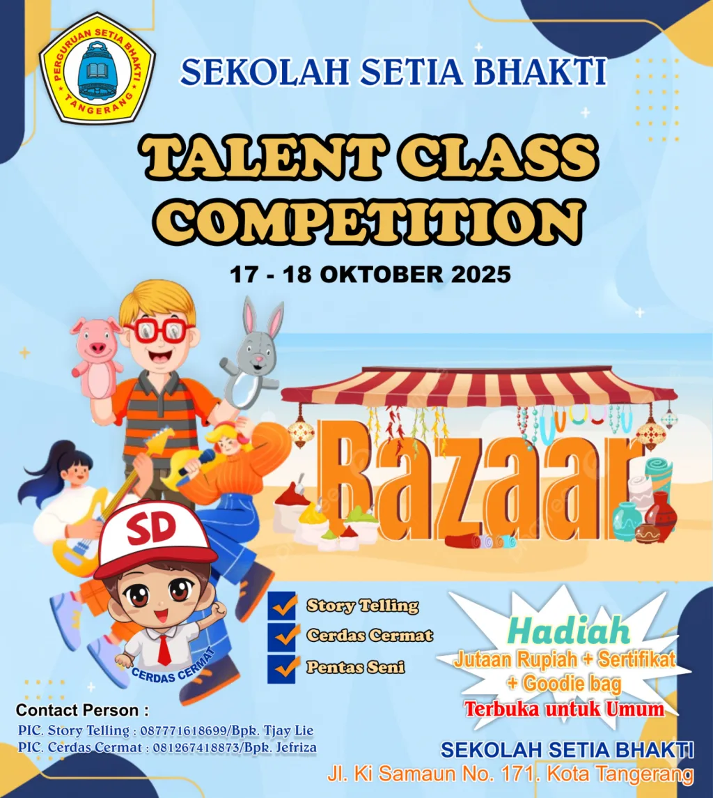Acara ini menggabungkan kompetisi antar siswa dengan pameran bazaar kreatif, menghadirkan suasana edukatif sekaligus menghibur. Tak hanya diperuntukkan bagi siswa Sekolah Setia Bhakti, kegiatan ini juga terbuka untuk umum, sehingga siapa pun dapat berpartisipasi dan menikmati keseruannya.